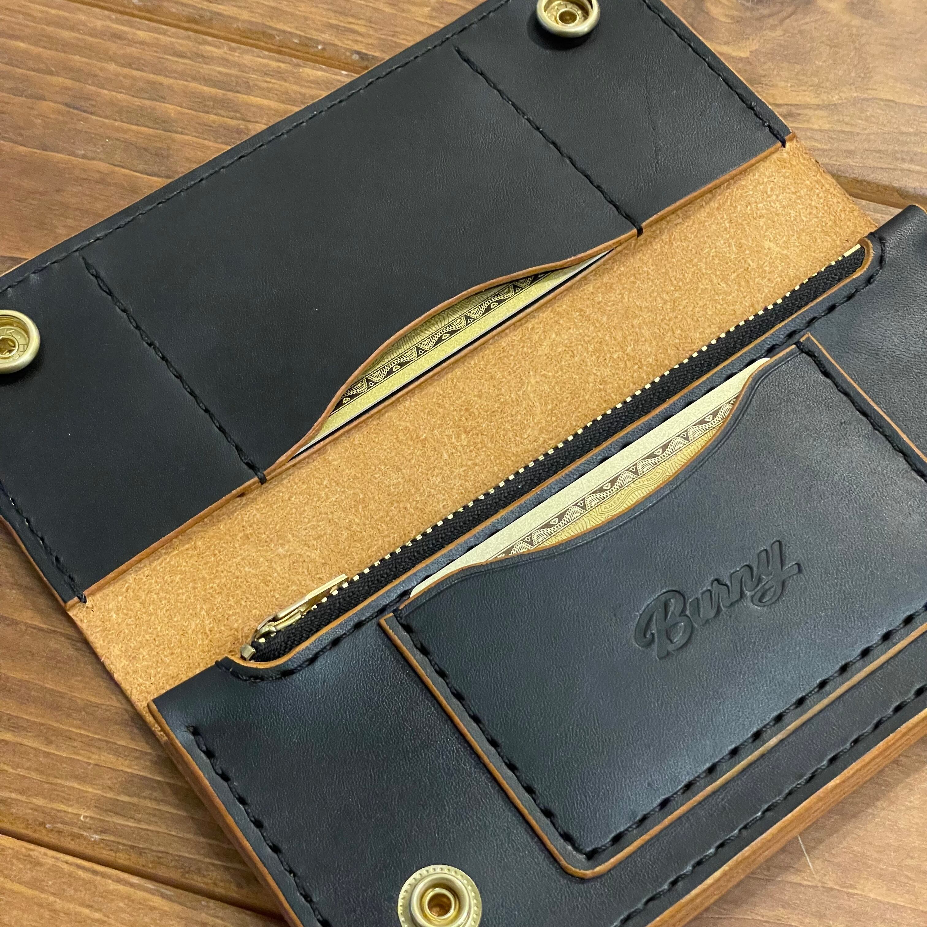 3層でフラップ裏にカードポケットの有るロングサイズのトラッカーウォレット。